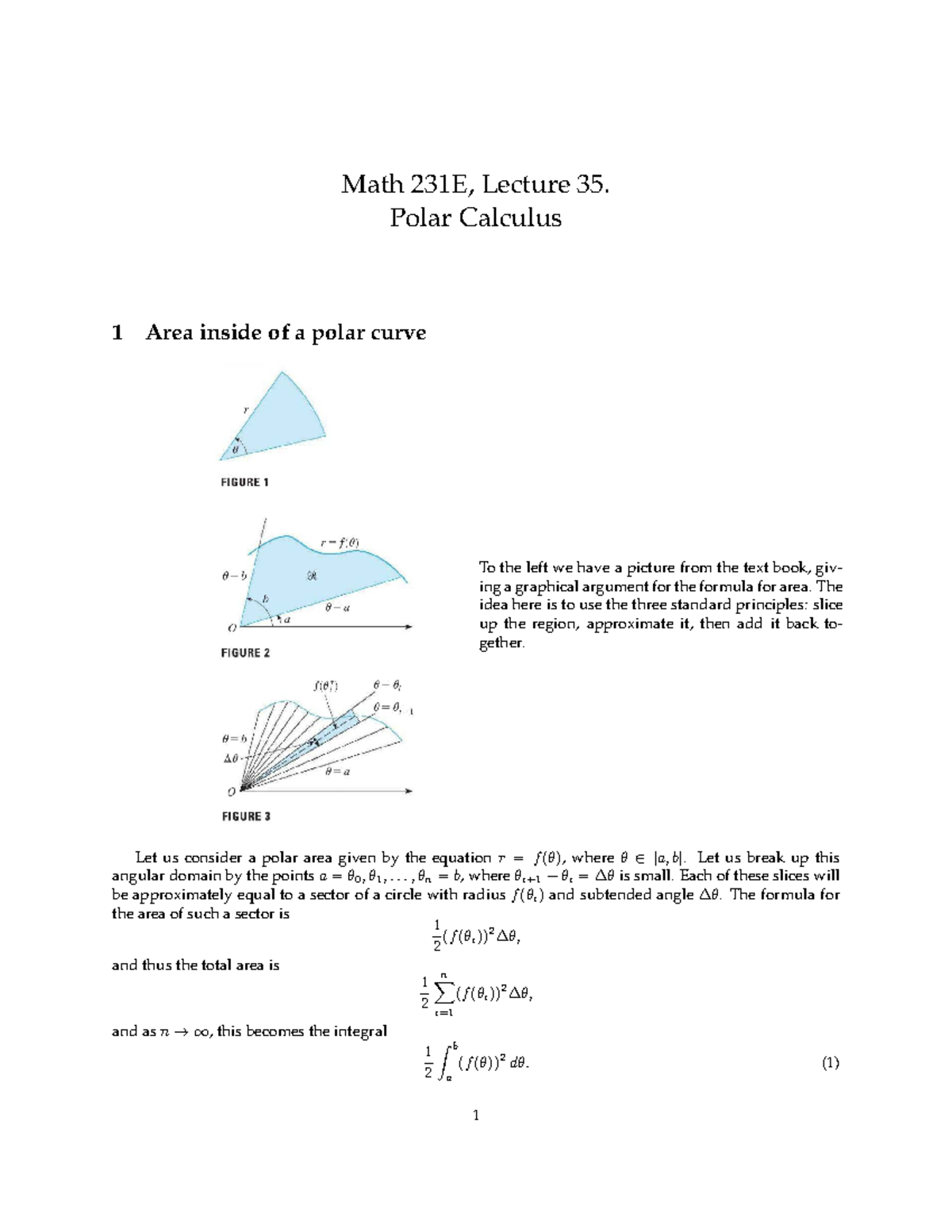 Math 231E, Lecture 35: Polar Calculus - Studocu