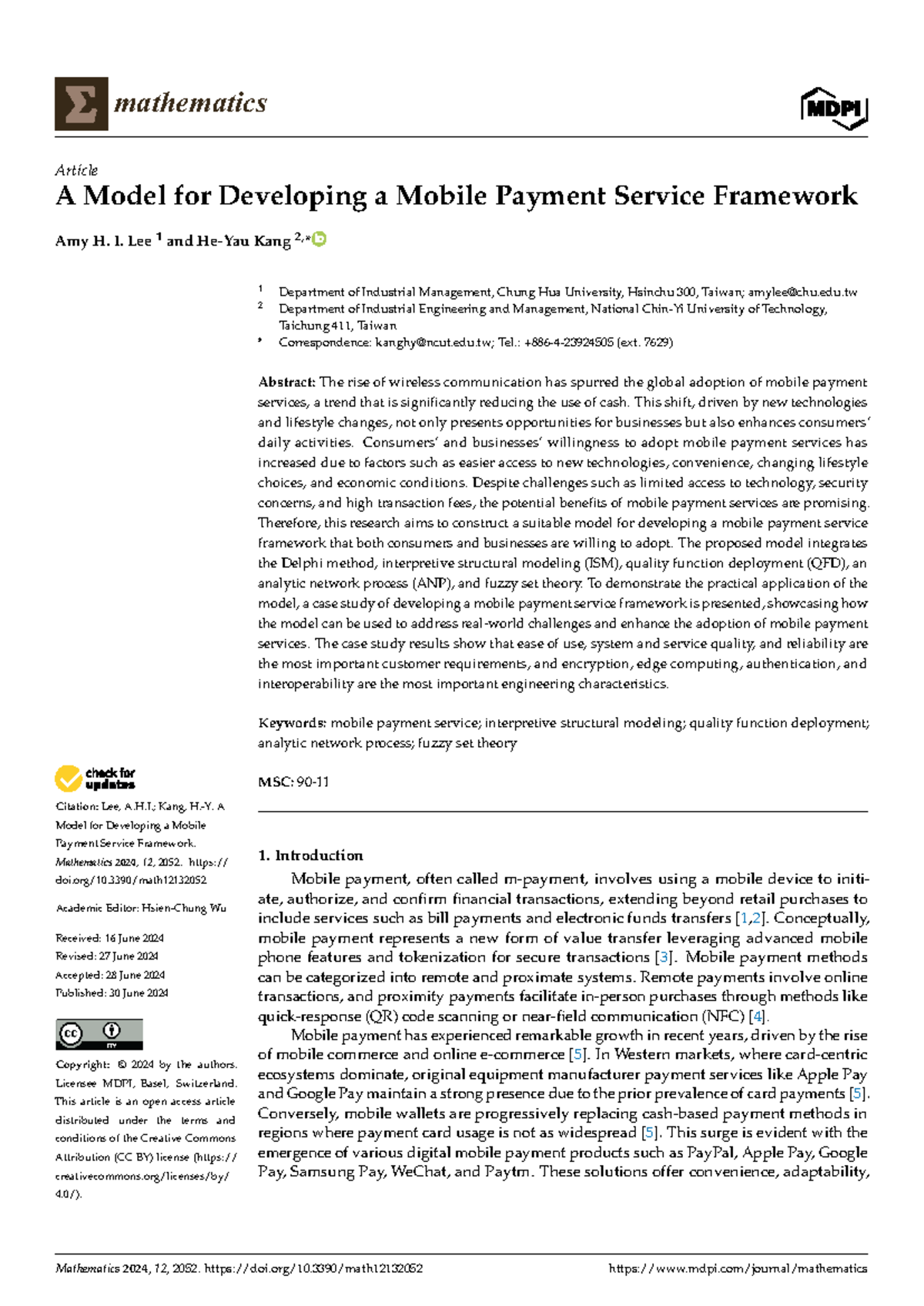 Mathematics 12: A Model for Mobile Payment Service Framework ...
