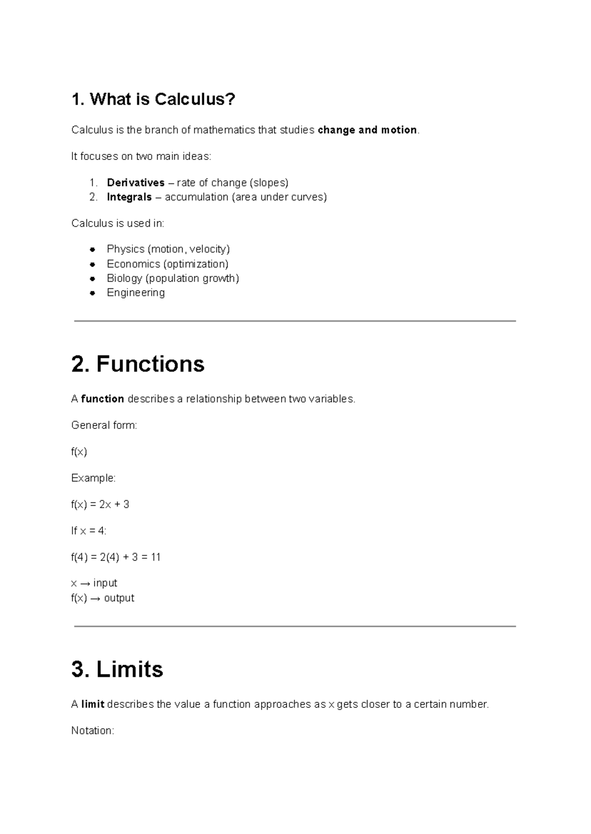 Calculus Overview: Key Concepts and Principles (MATH 101) - Studocu