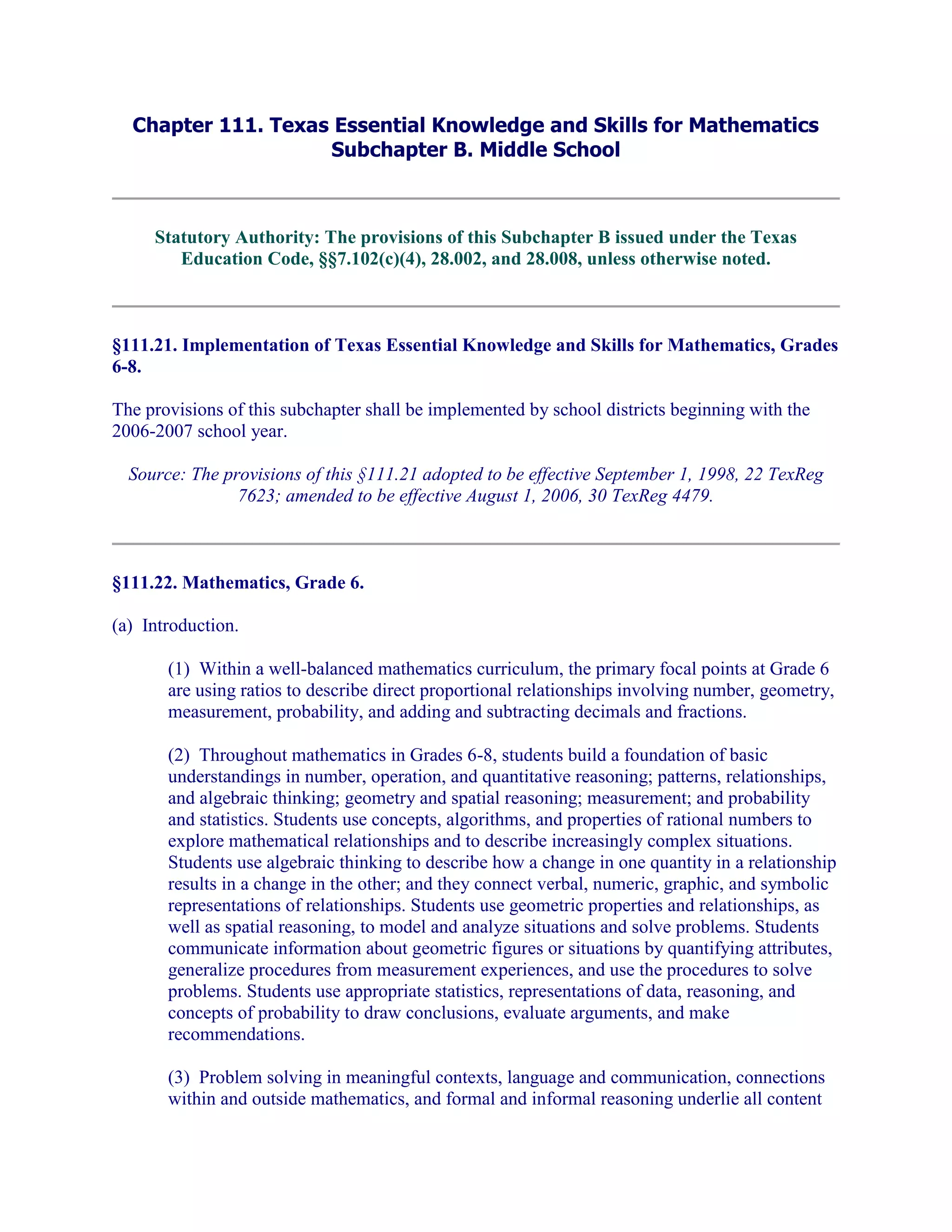 Middle School Math TEKS | PDF