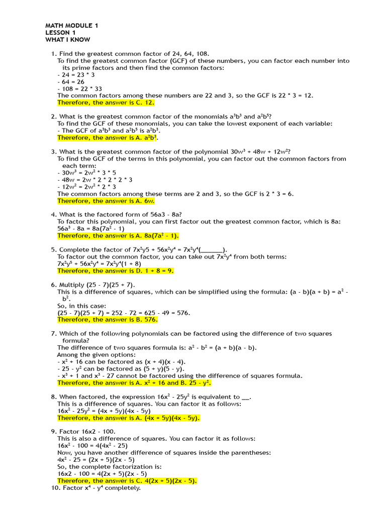 Mathematics 10 Learning Modules Quarter 1 | PDF