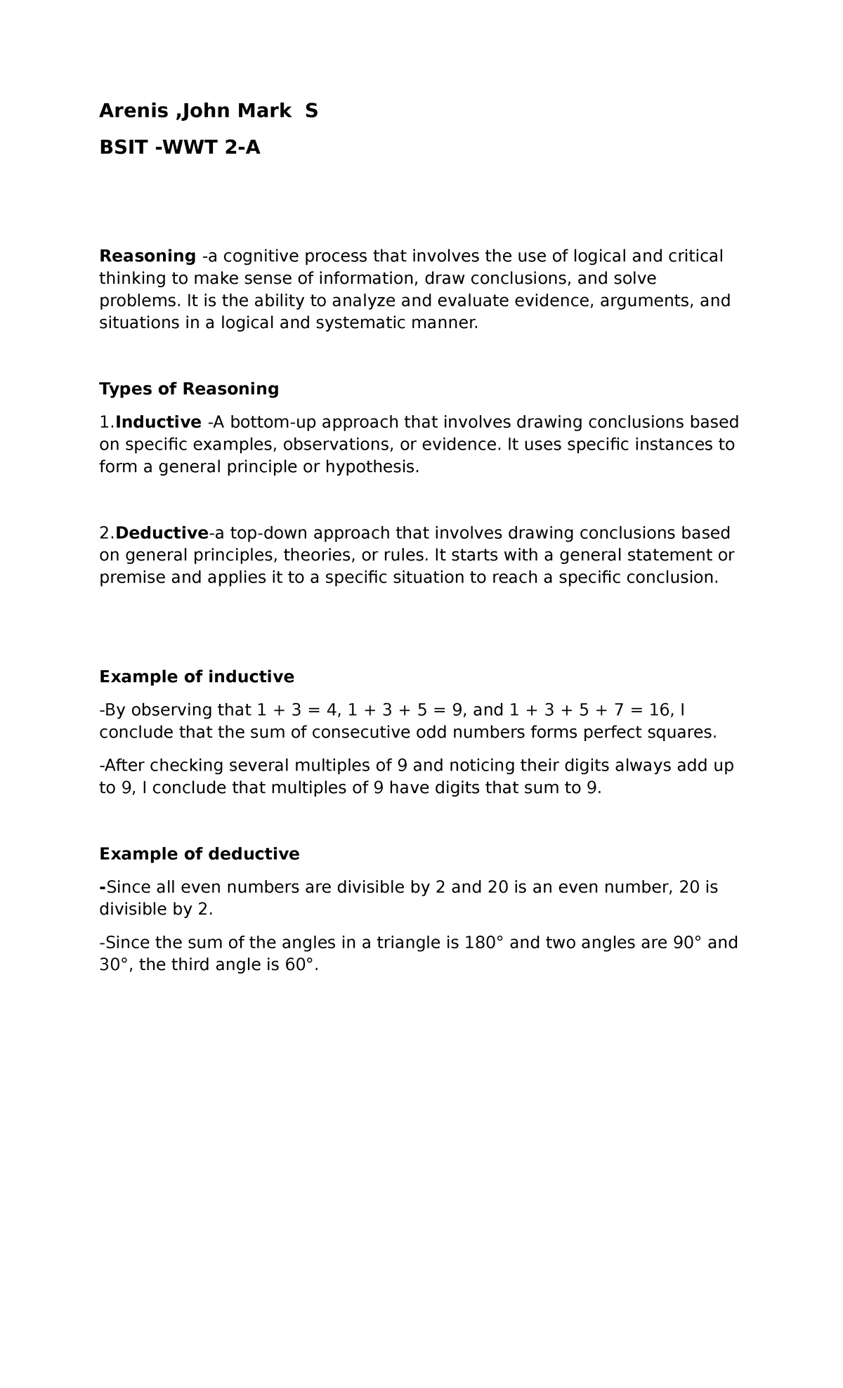 BSIT 101: Cognitive Reasoning Processes in Mathematics Review - Studocu
