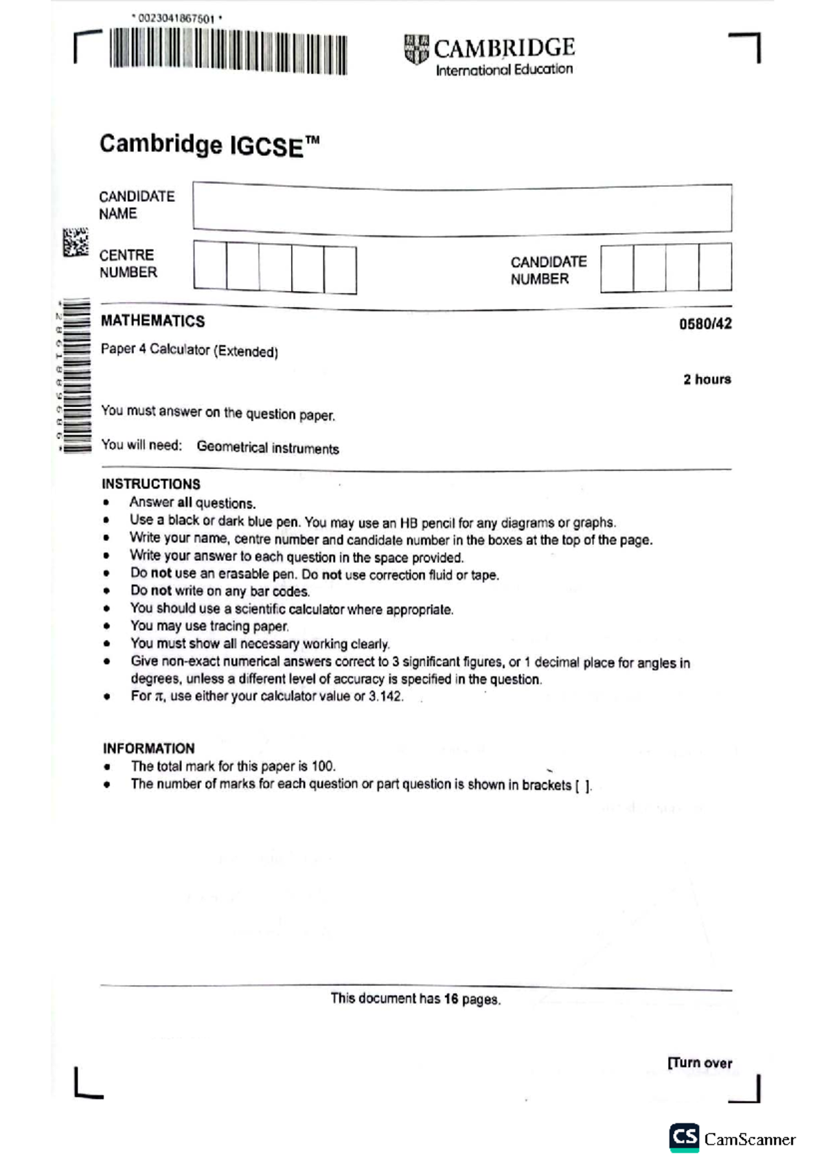 February/March 2026 Paper 4 0580 Mathematics (Extended) Unsolved - Studocu