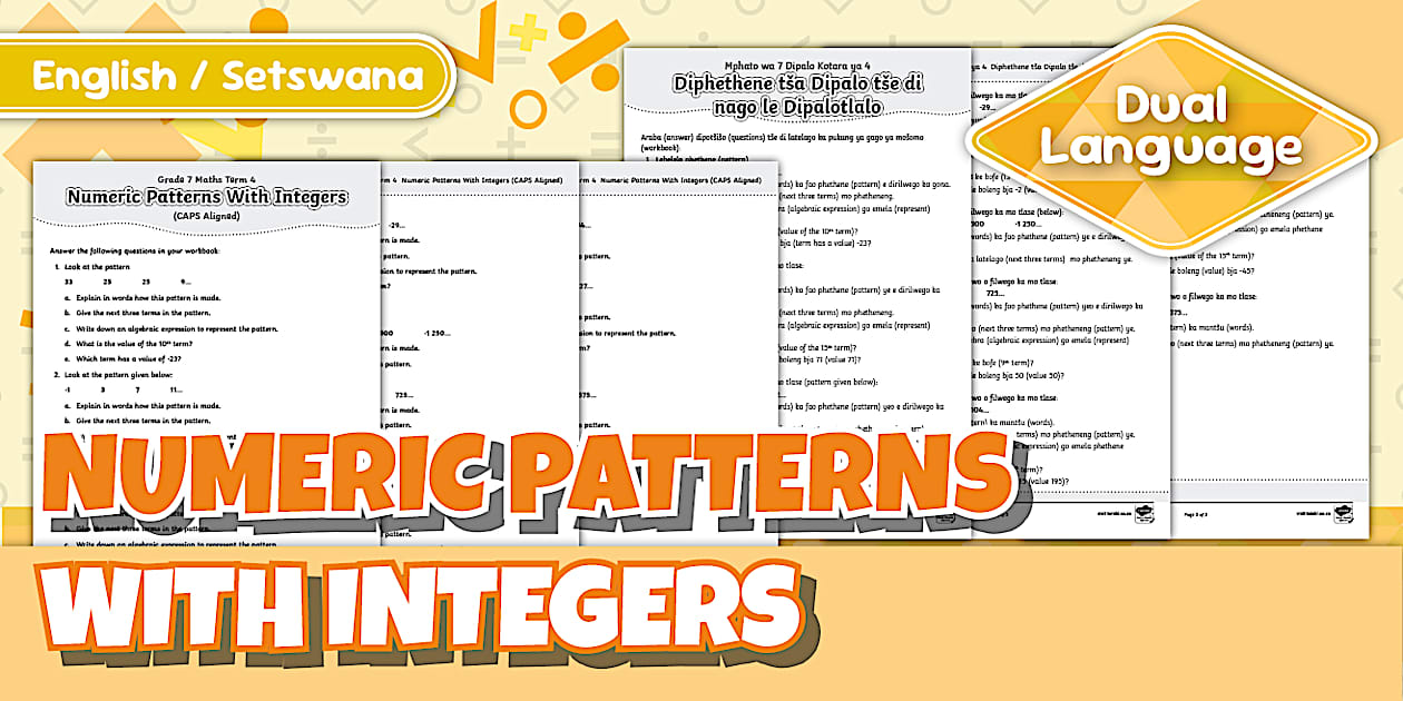 Grade 7 Maths - Term 4 - Numeric Patterns With Integers – Activity Sheet