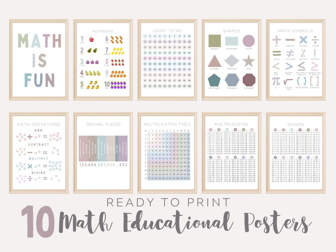 10 Educational Math Posters. Neutral Colors. Elementary Classroom ...
