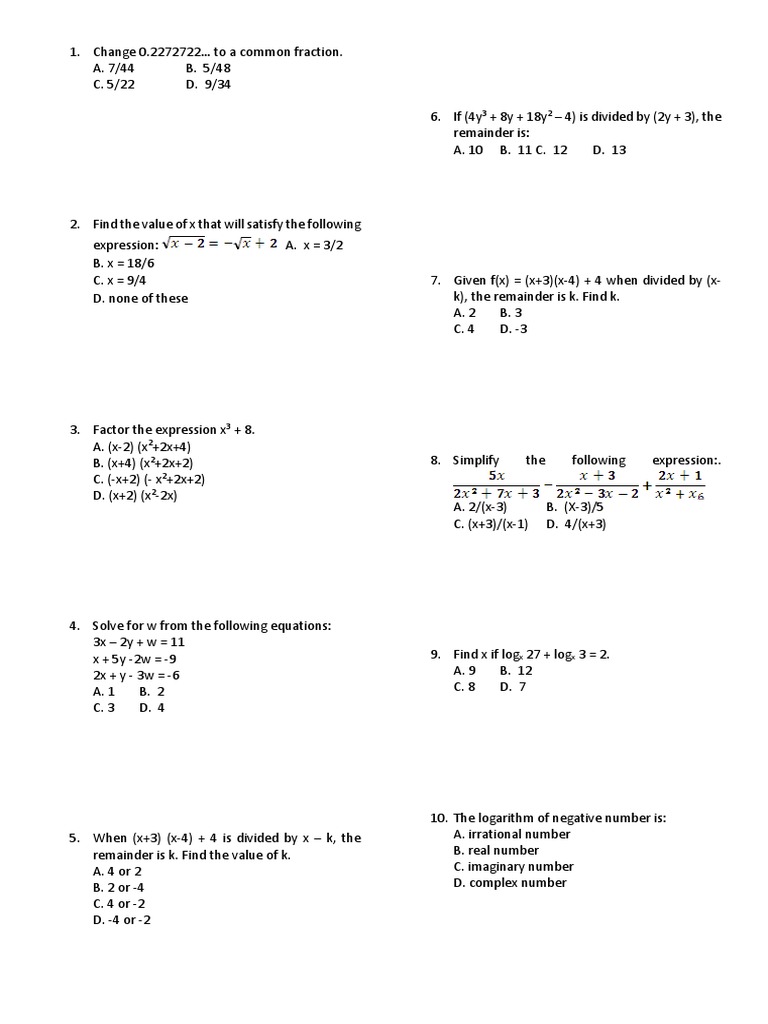 Free Math Worksheets High School - Free Math Worksheet Printable