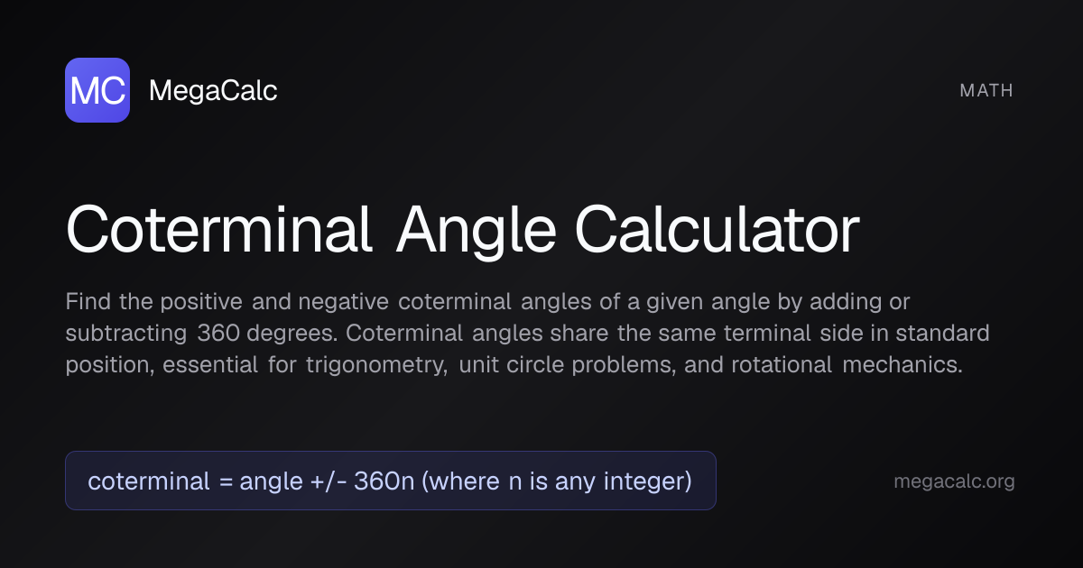 Coterminal Angle Calculator — Free Online with Formula & Steps | MegaCalc