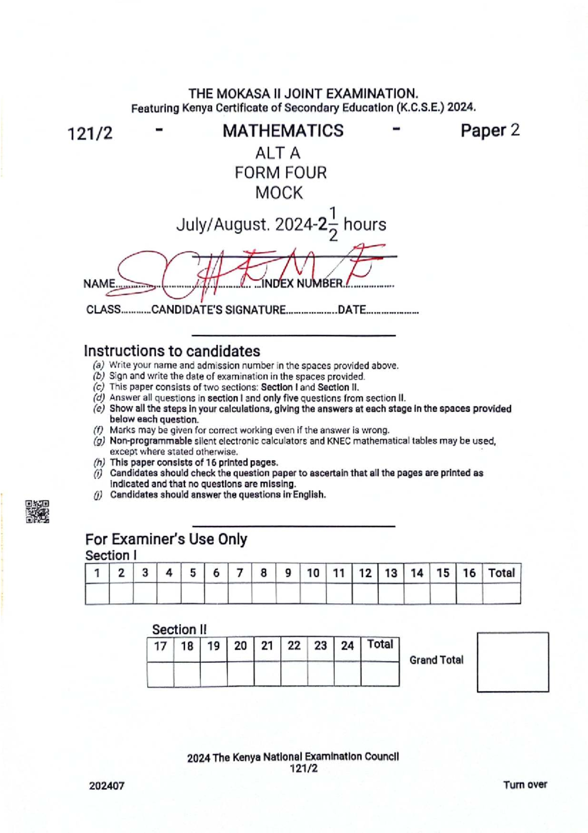 K.C.S.E. 2024 Mock Exam: Mathematics Paper 2 Guide - Studocu