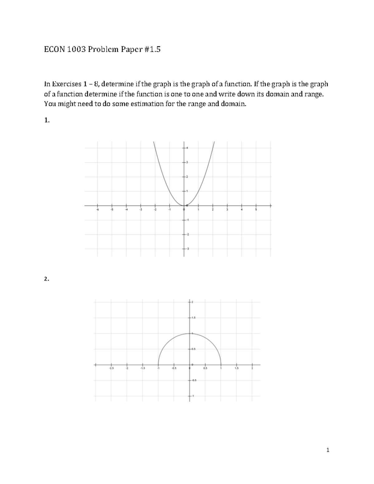 ECON 1003 pp#1 - Algebra - ECON 1003 Problem Paper #1. In Exercises 1 ...