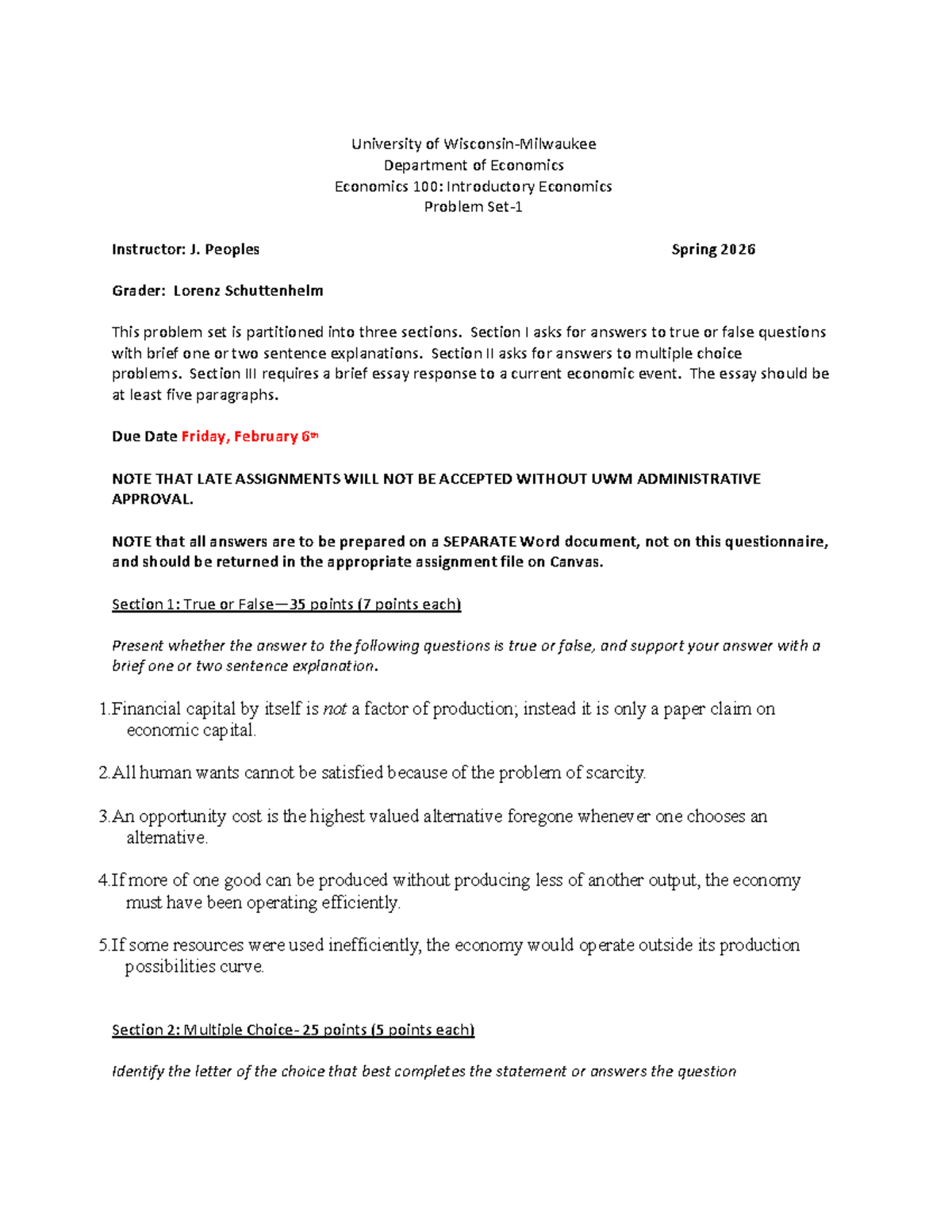 Econ 100: Problem Set 1 - Introductory Economics Spring 2026 - Studocu