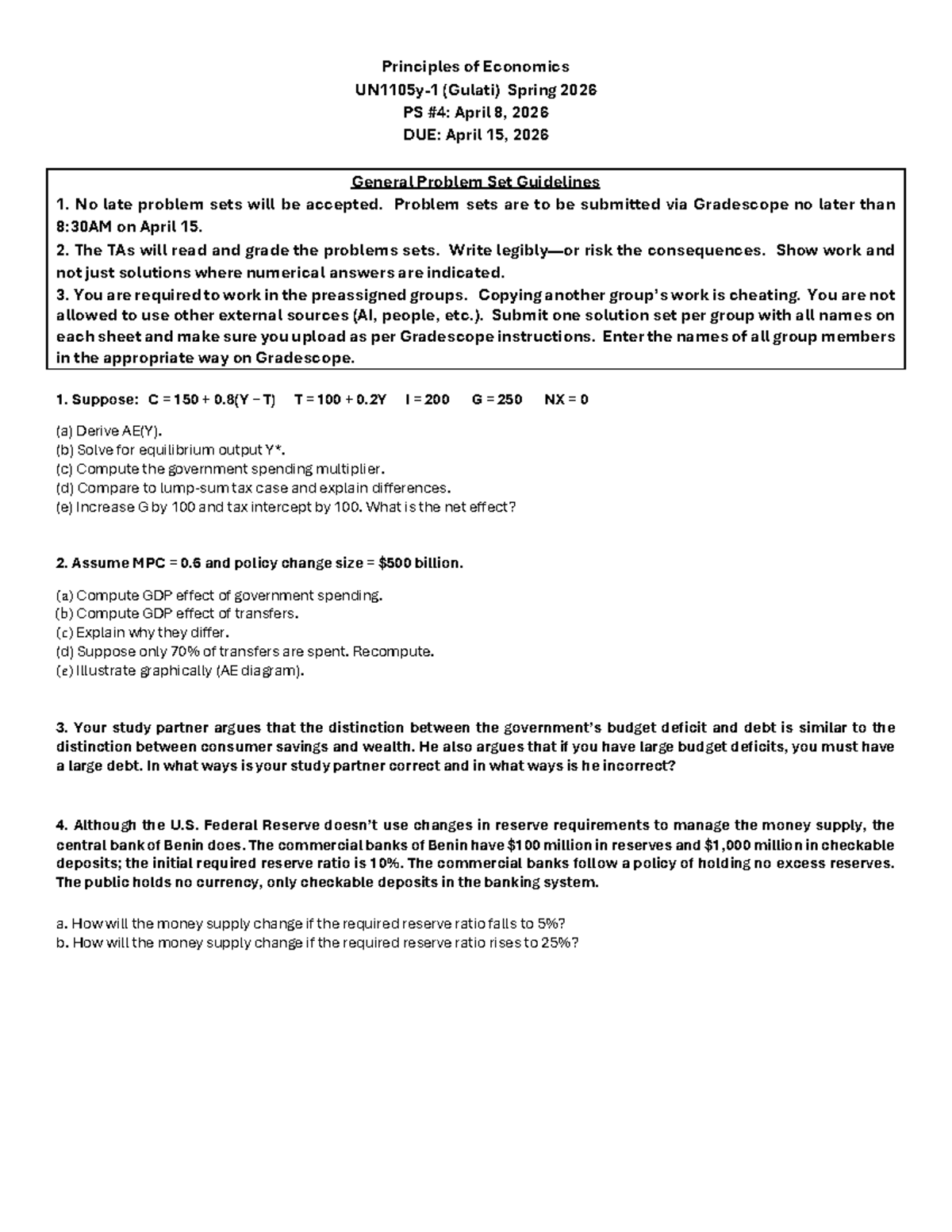 Principles of Economics PS4 Problem Set Guidelines - Spring 2026 - Studocu