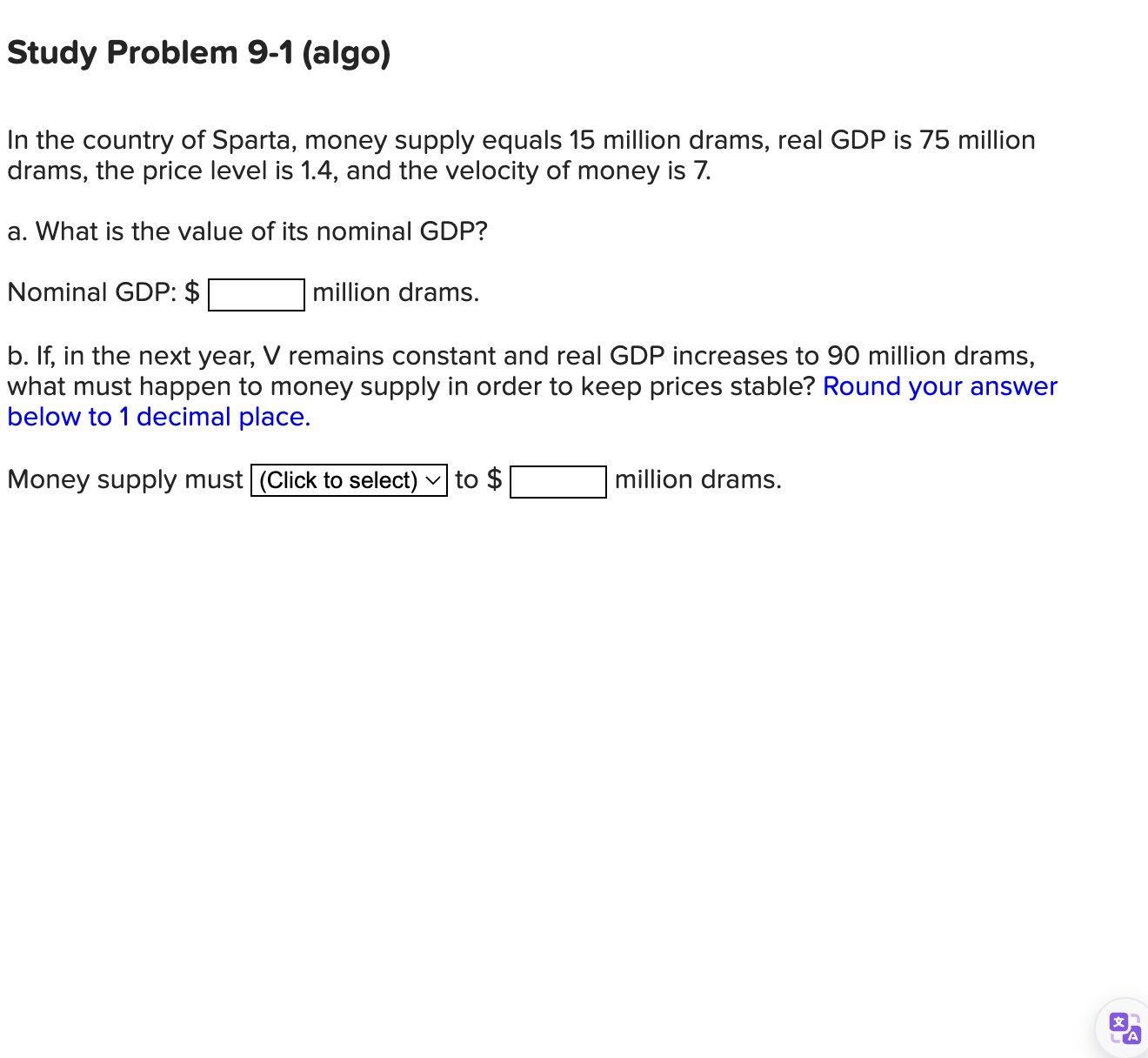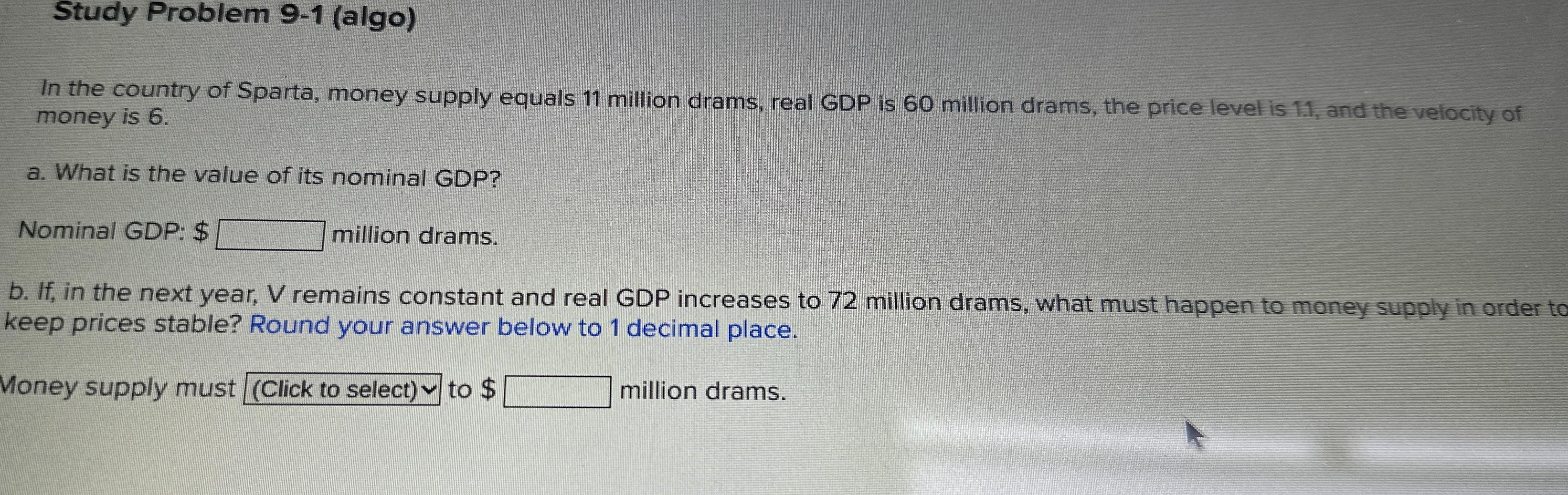 Solved Study Problem 9-1 (algo)In the country of Sparta, | Chegg.com