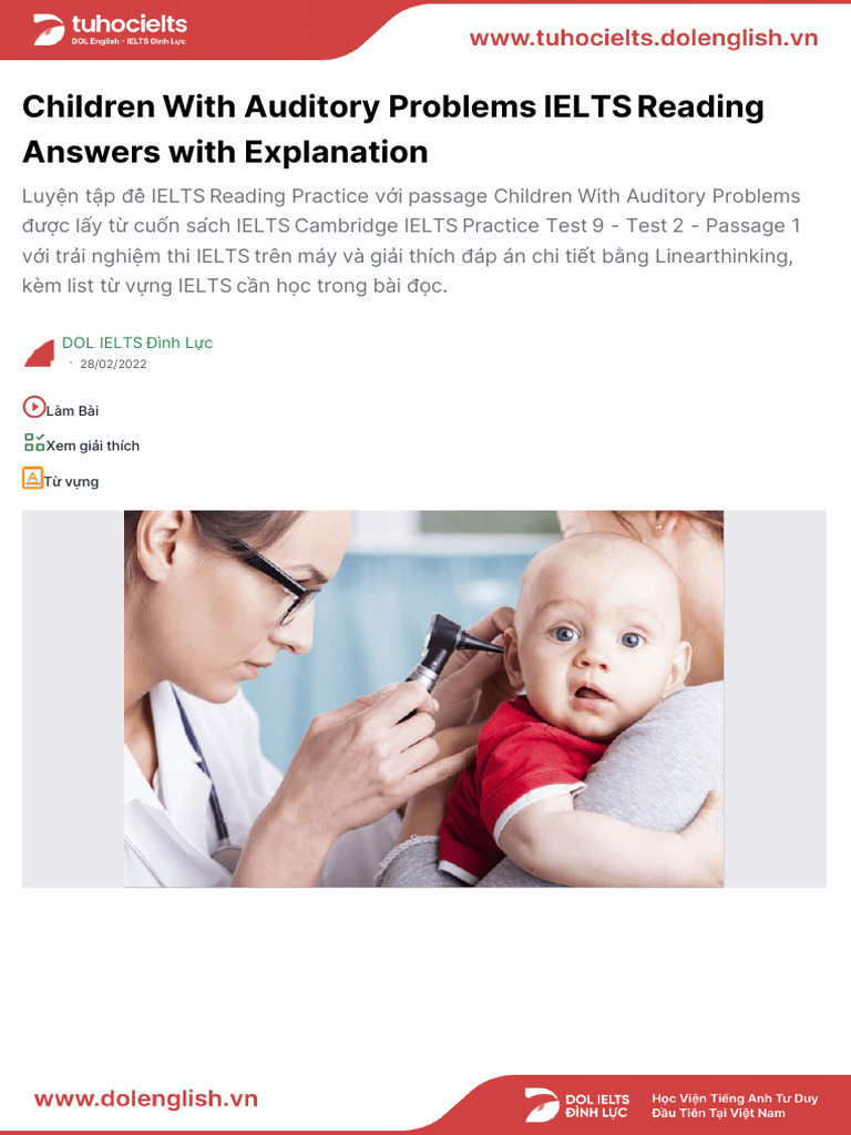 Children With Auditory Problems IELTS Answers Guide