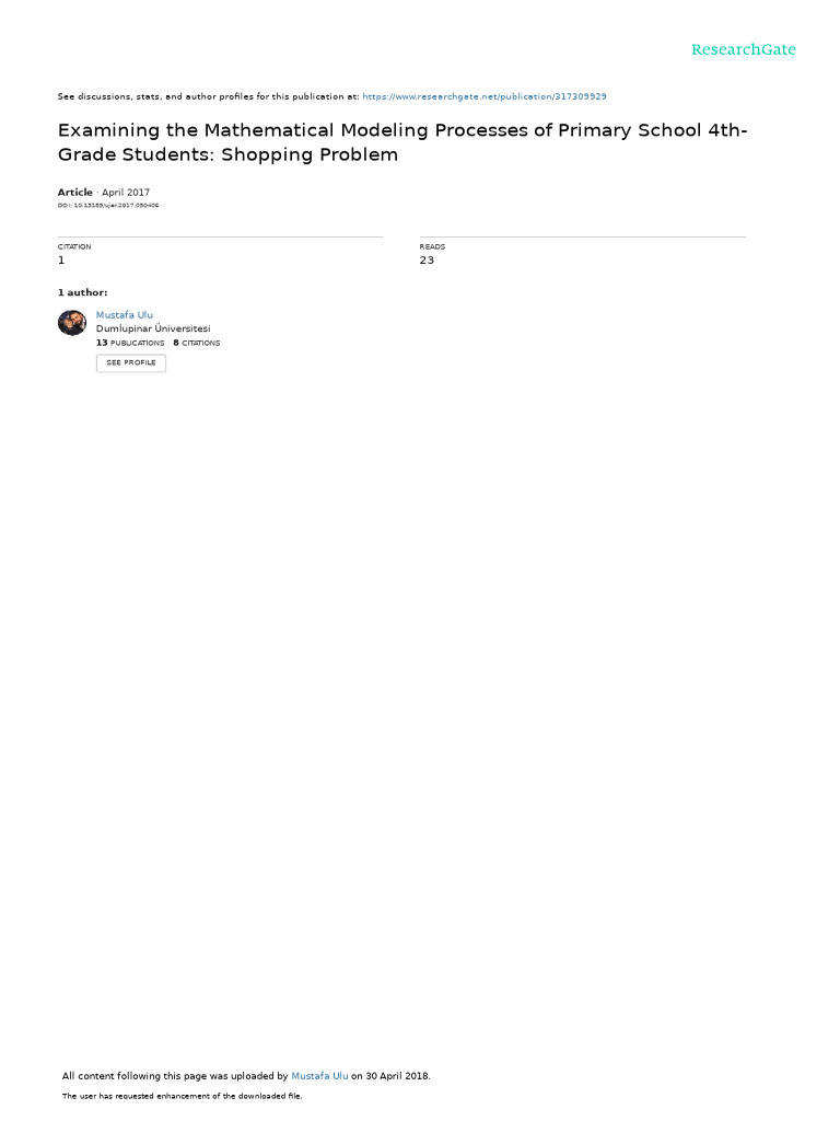 Examining The Mathematical Modeling Processes of P | PDF