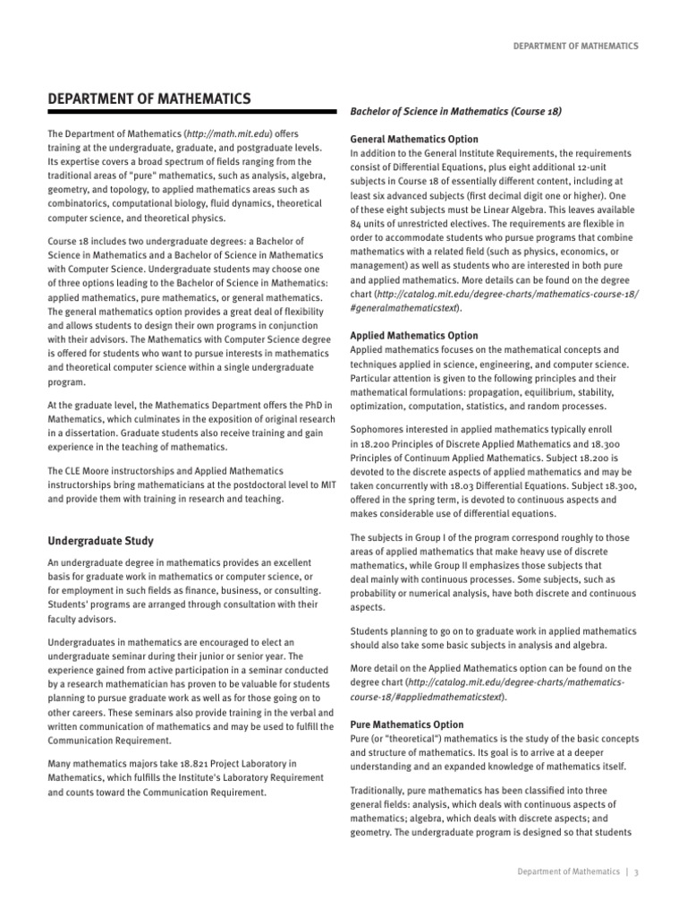 MIT Math undergraduate degree questions for Pure Mathematics. The table ...