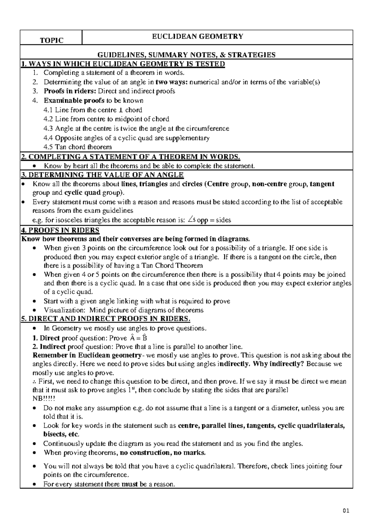 Gr 11 Euclidean Geometry 2026: Guidelines & Summary Notes - Studocu