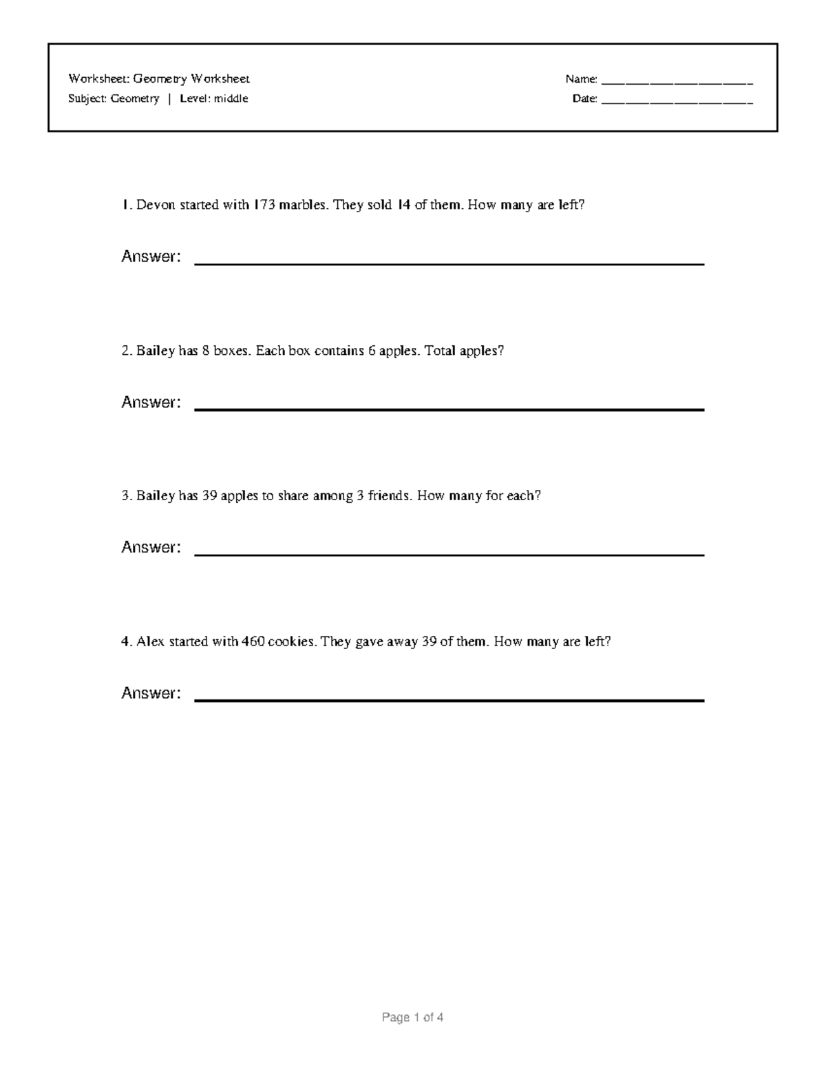 Geometry Worksheet: Middle Level Exercises and Answers - Studocu