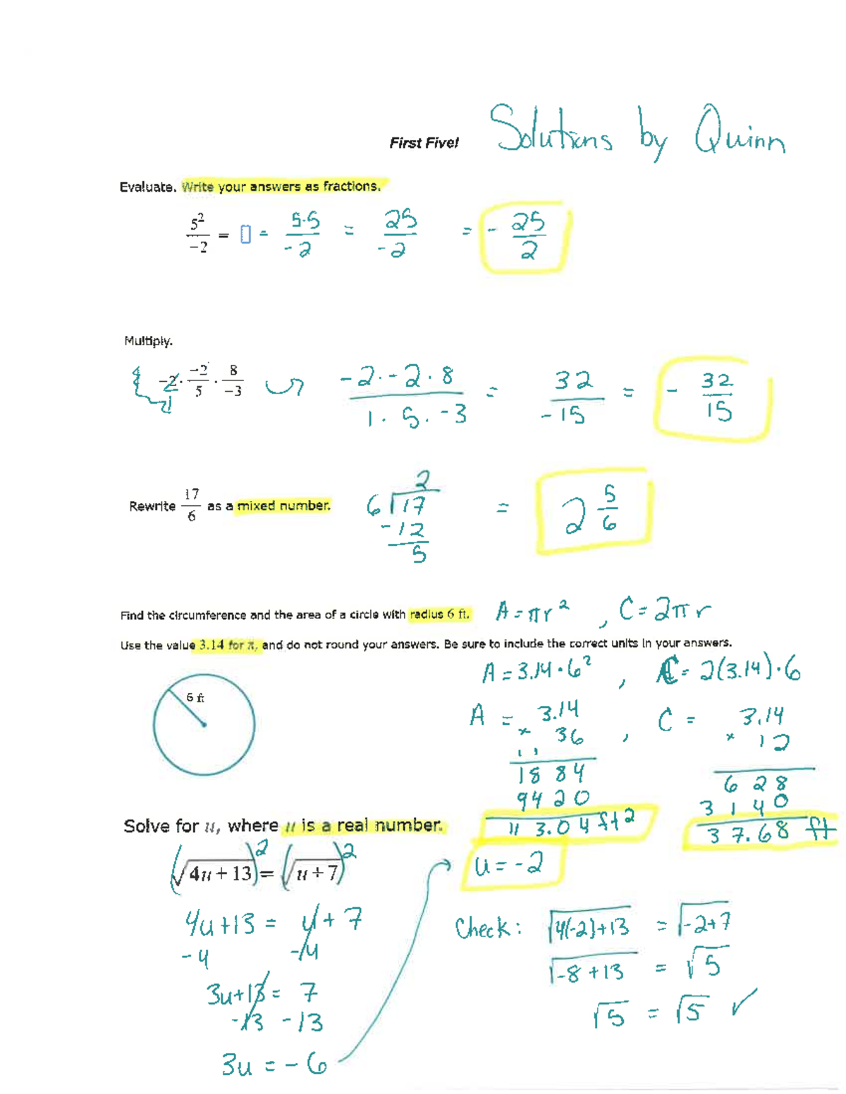 Aleks G R 17 First Five Review Solutions: Fractions & Geometry - Studocu