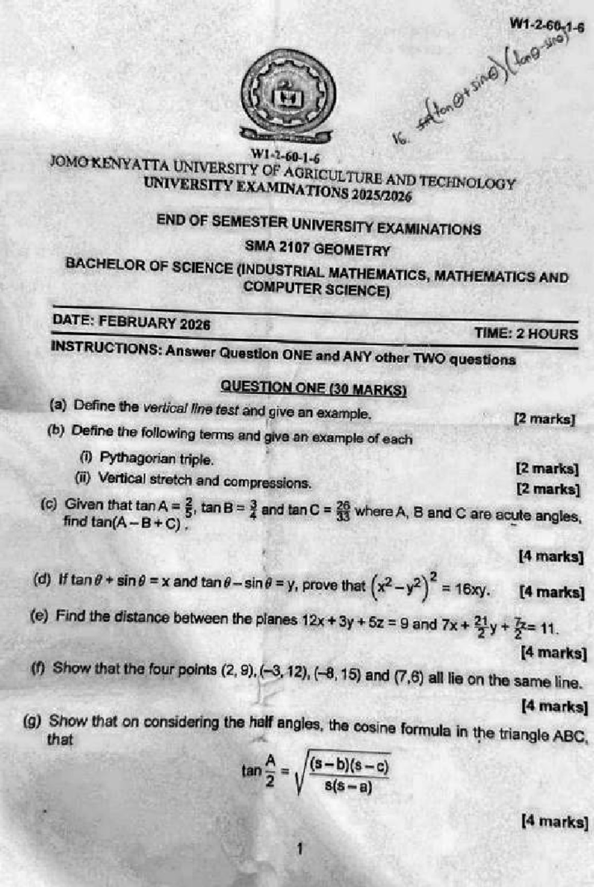 SMA 2107 Geometry Final Exam Revision Notes - Studocu