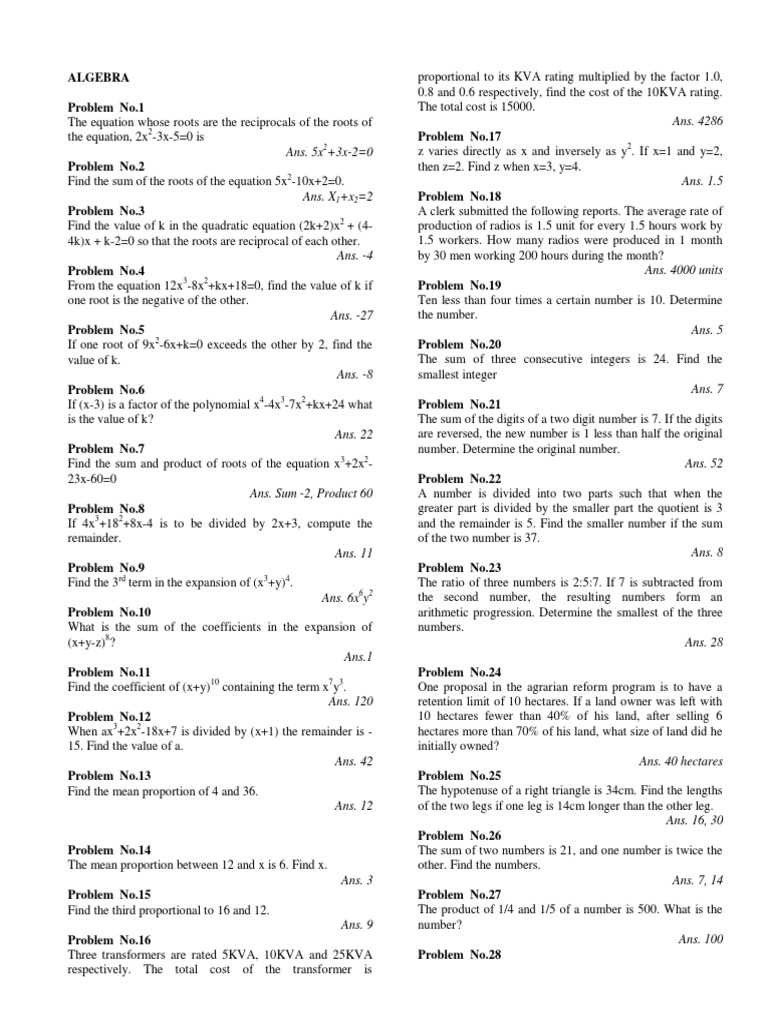 Algebra Mathematics Problems