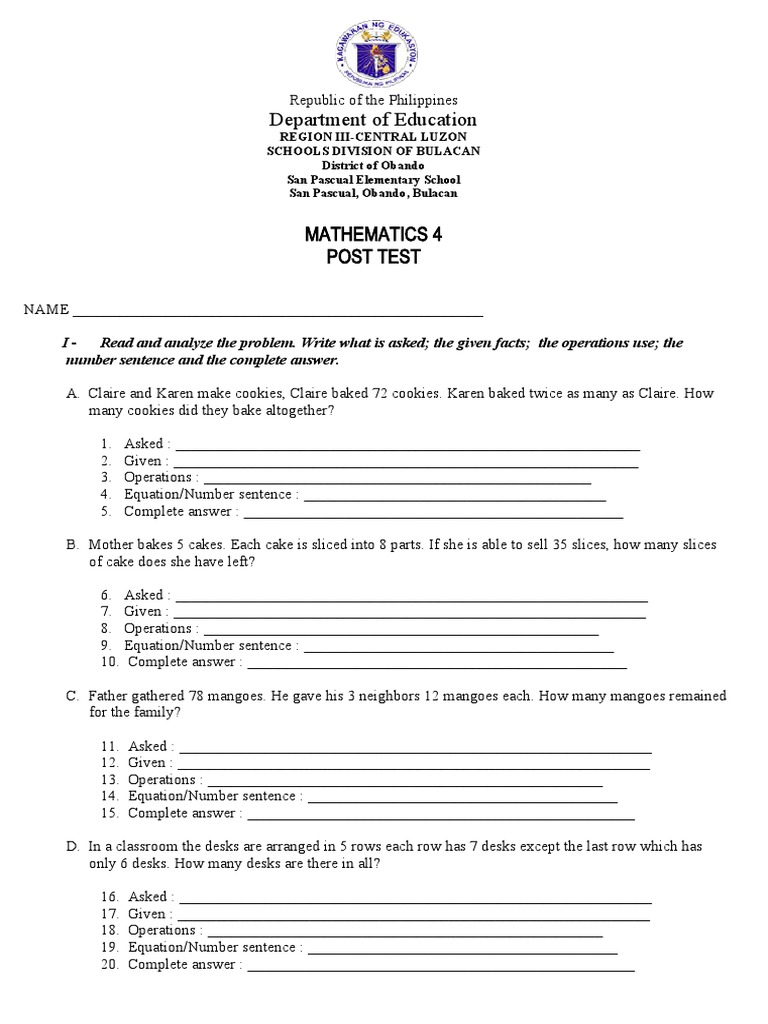 Math 4 Prolem Solving Pre Final | PDF | Philippines