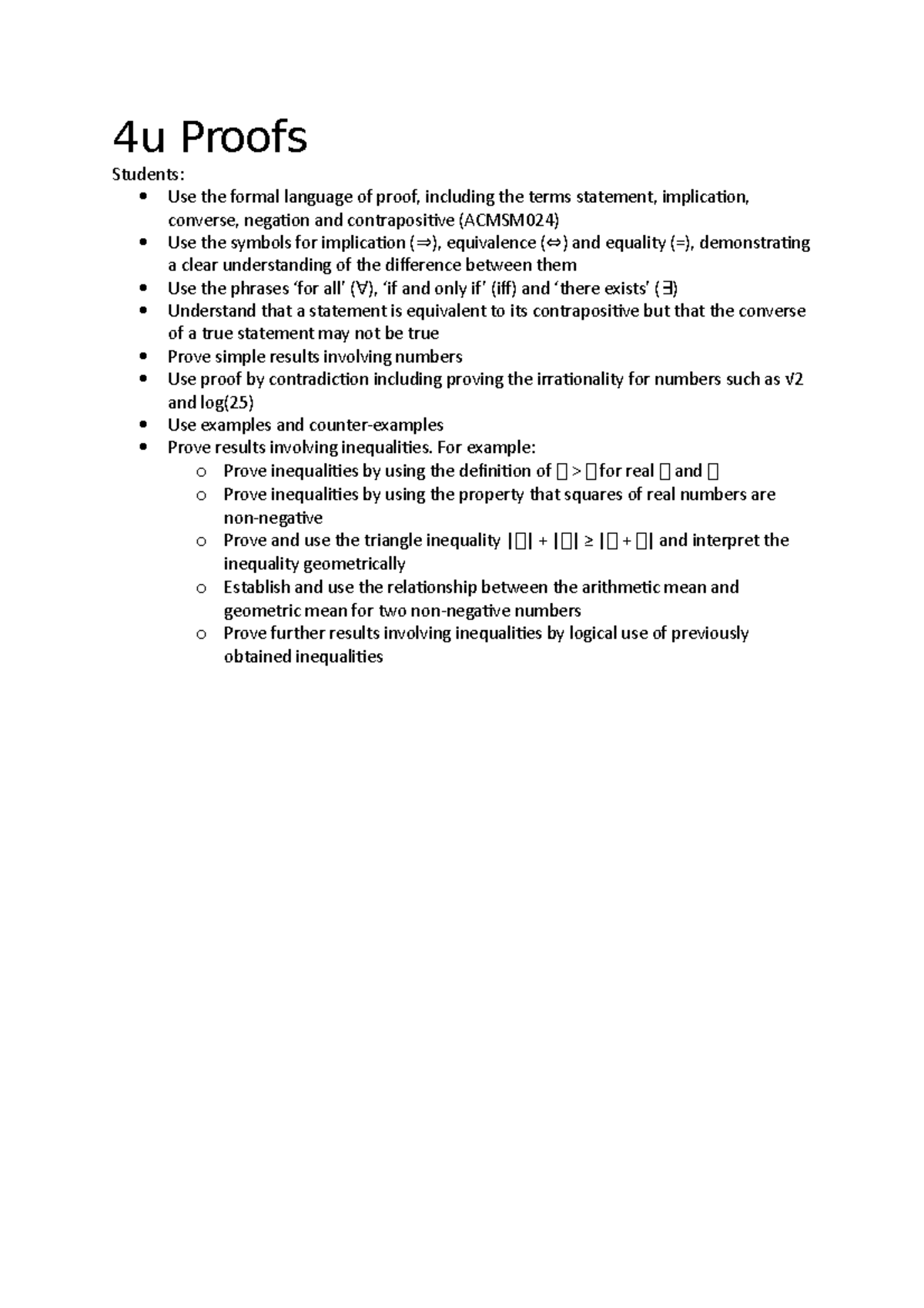 4u Proofs - 4u Proofs Students: Use the formal language of proof ...