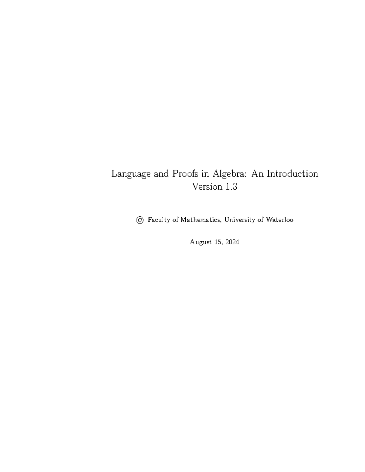 MATH 135 Language and Proofs in Algebra: Introductory Course Notes ...