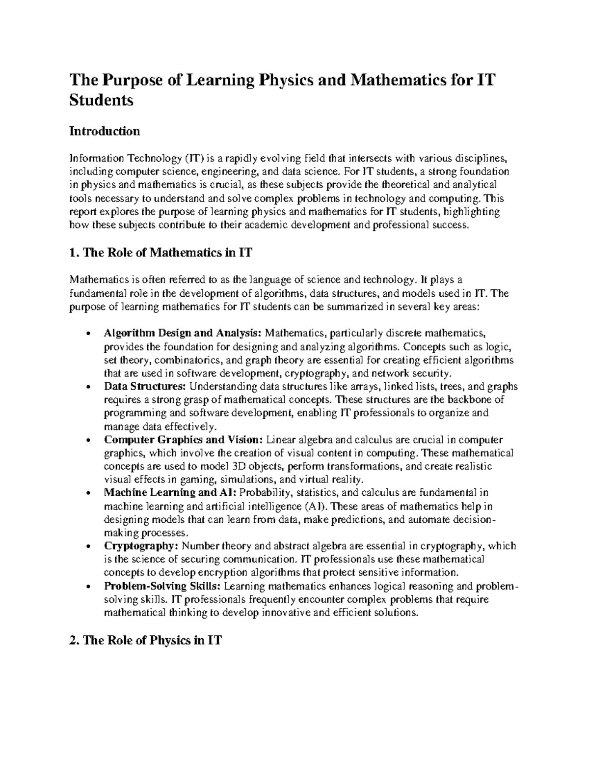 The Purpose of Learning Physics and Mathematics for IT Students - The ...