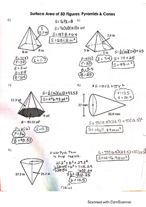 SA Pyramids and Cones Answer Key - MATH 3321 - Studocu