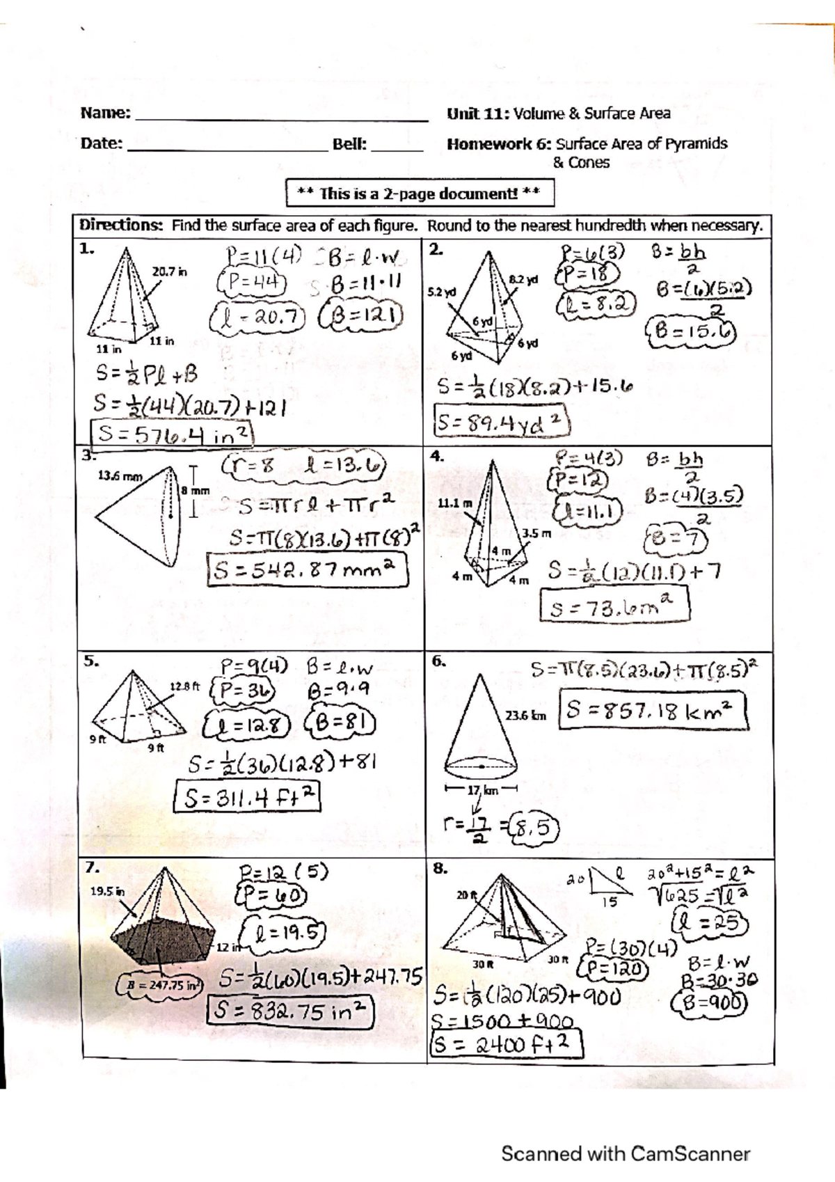 Homework 6 Surface Area Of Pyramids And Cones at Leo Mclucas blog