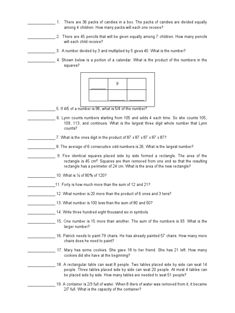 Complete Math Exam Questions | PDF | Elementary Mathematics | Numbers