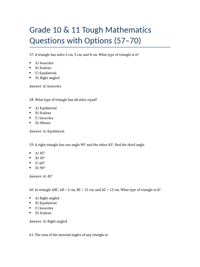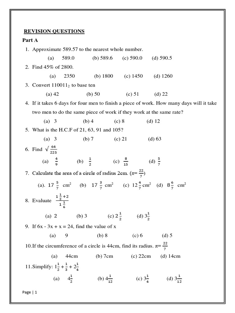 Math Revision Questions and Answers | PDF | Speed | Elementary Geometry