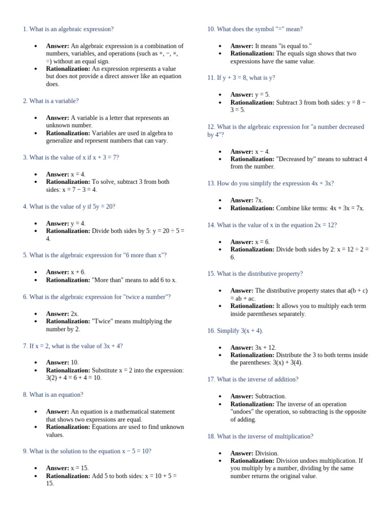 50 Essential Math Questions and Answers | PDF | Numbers | Mathematics