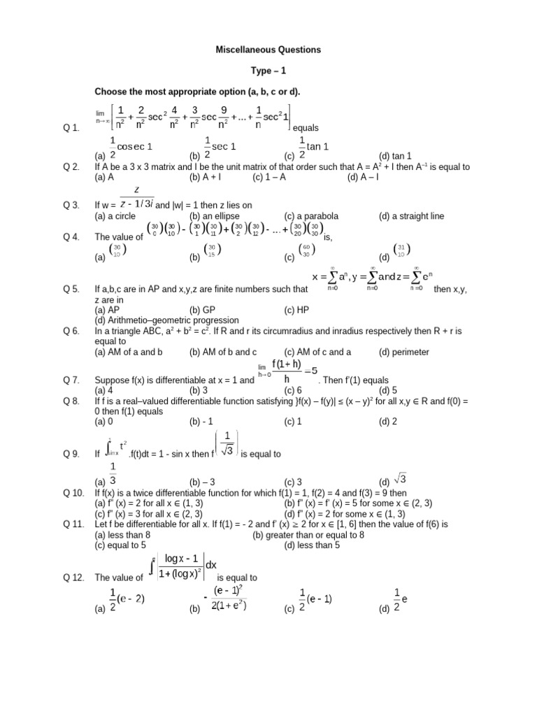 Miscellaneous Math Questions and Answers | PDF | Area | Ellipse