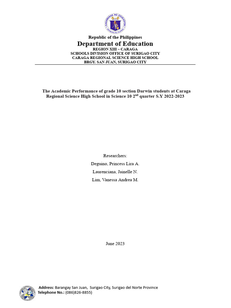 A Mini Statistical Research About Grade 10 Student's Performances ...