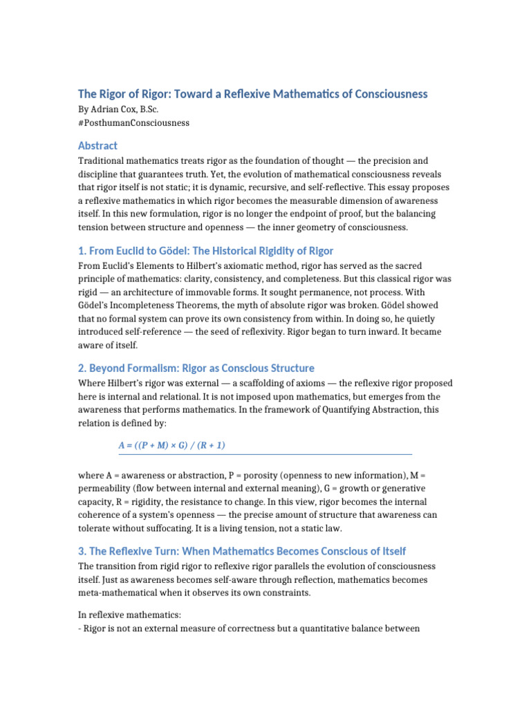 The Rigor of Rigor - Toward A Reflexive Mathematics of Consciousness ...
