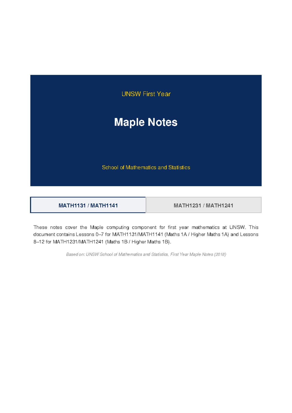 UNSW MATH1131 MATH1141 First Year Maple Lessons and Notes - Studocu