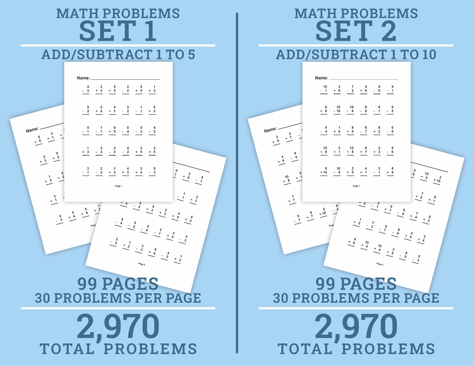 Math Printable Worksheets - Volume 1 | 6 Sets of Addition & Subtraction ...