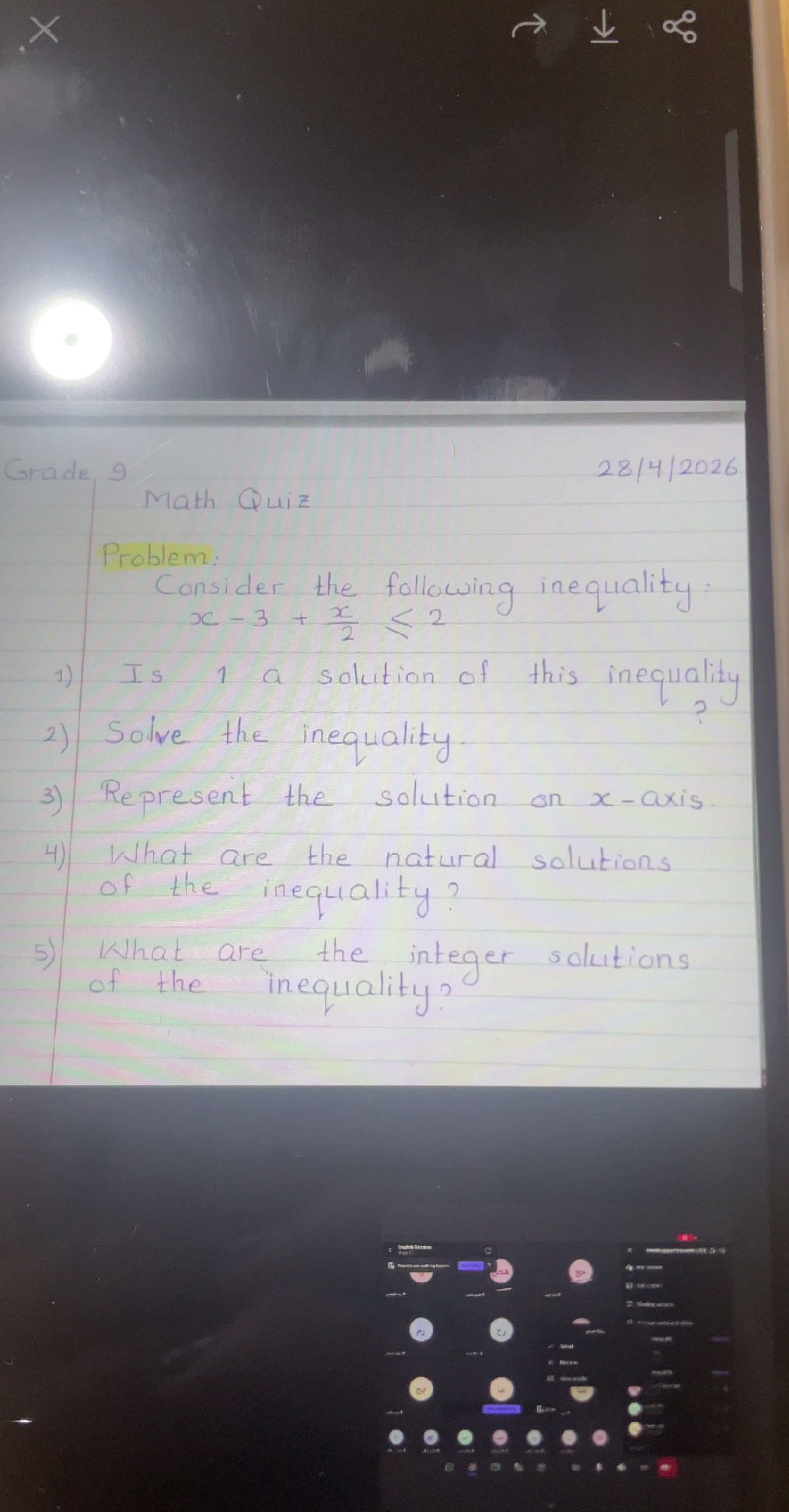 Grade 9 Math Quiz 28/4/2026 Problem: