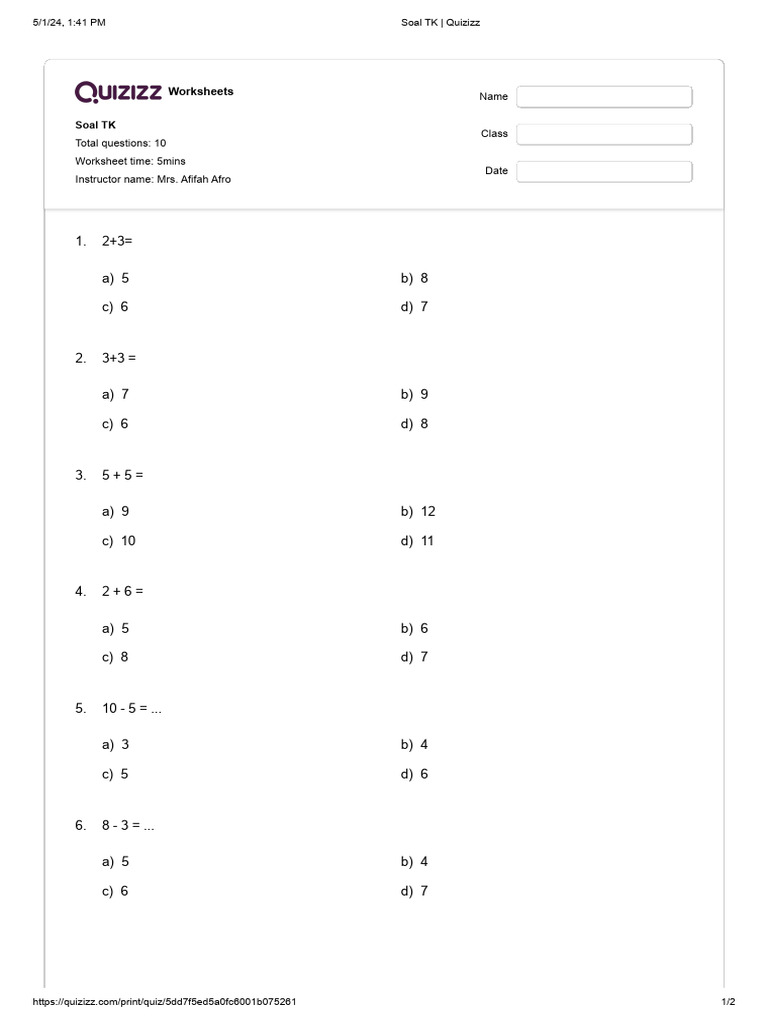 Tk Math Worksheets - Educational Printable Activities