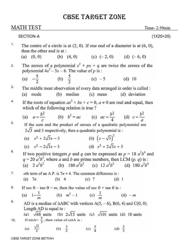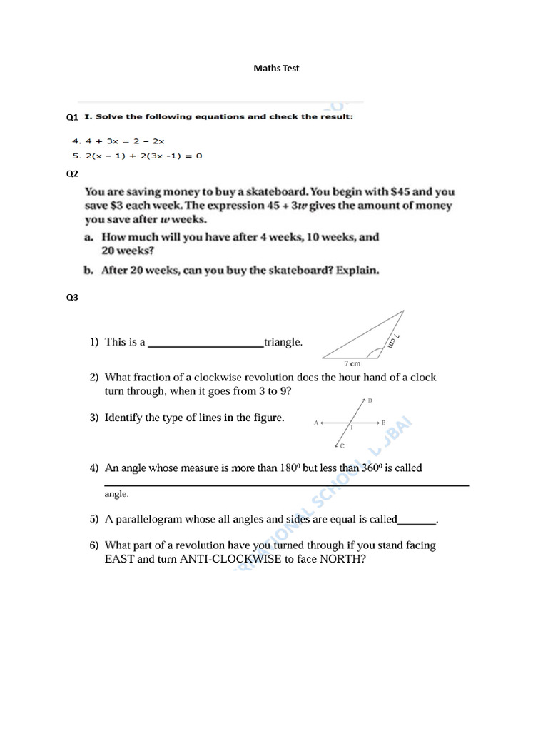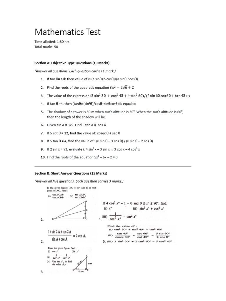 Sample_Math_Test_Paper | PDF | Triangle | Euclidean Geometry
