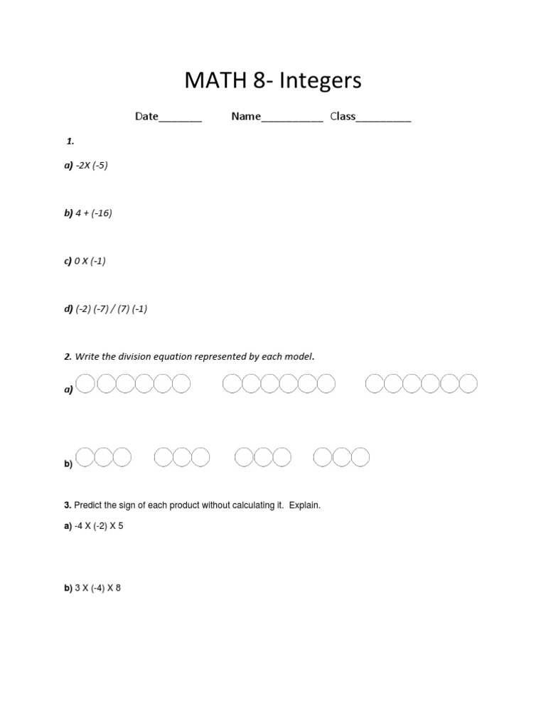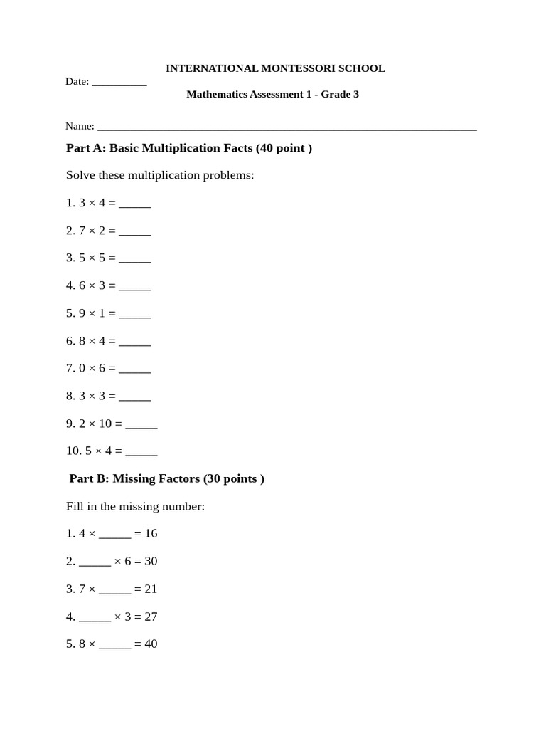 Grade 3 Math Practice Test # 1 Name:: Section A | PDF