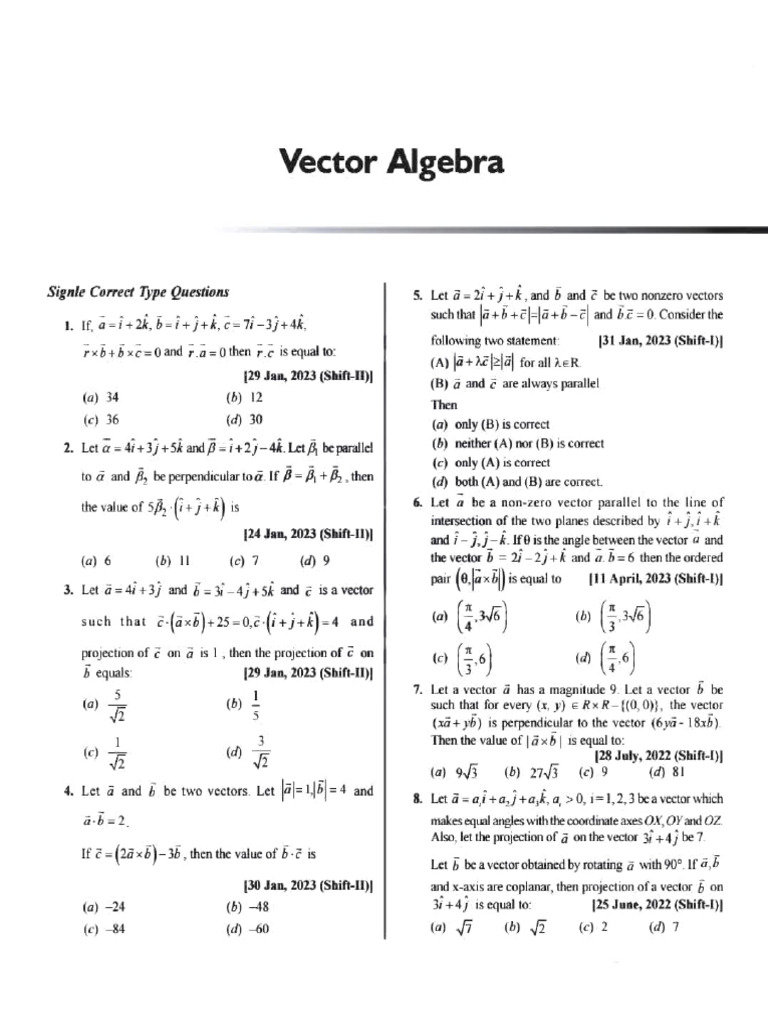 JEE Test - Vector Algebra | PDF | Euclidean Vector | Cartesian ...