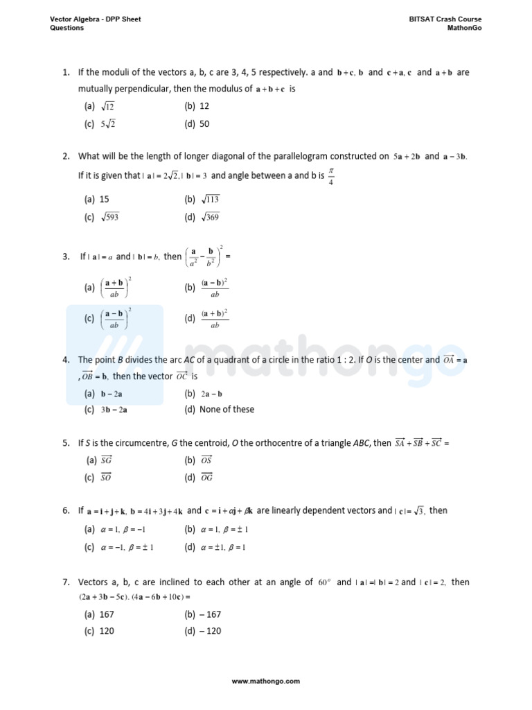 Vector Algebra Practice Sheet | PDF | Euclidean Vector | Triangle