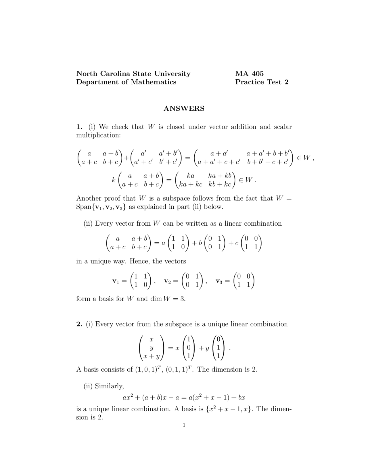 Vector Addition - Introduction to Linear Algebra and Matrices- Test ...