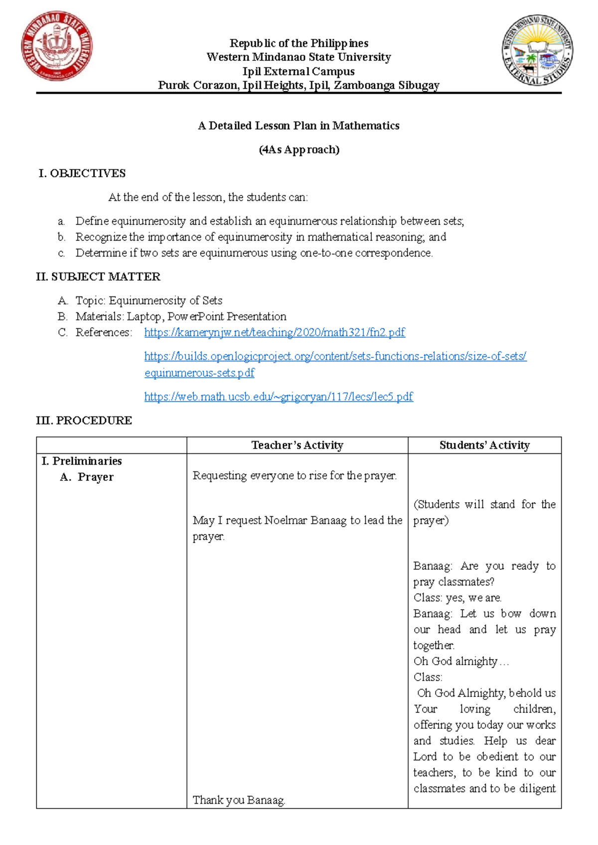 A Detailed Lesson Plan in Mathematics 2 - Republic of the Philippines ...