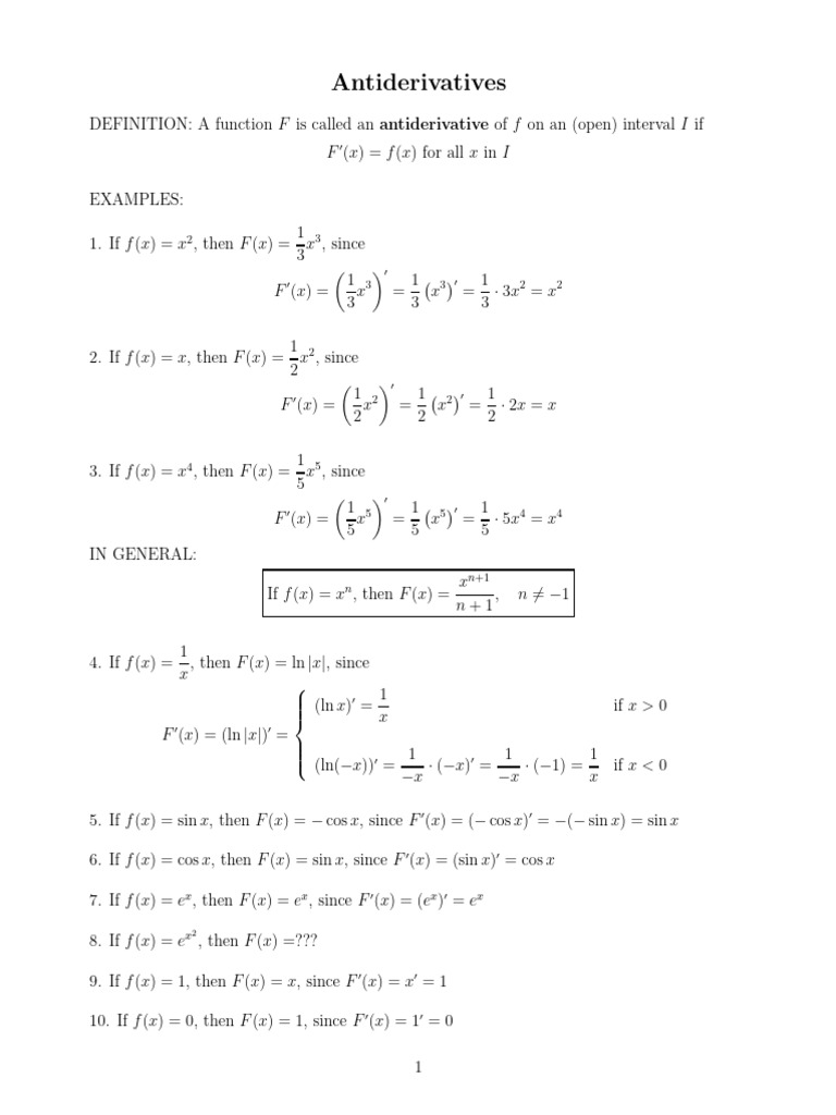 Understanding Antiderivatives and Formulas | PDF