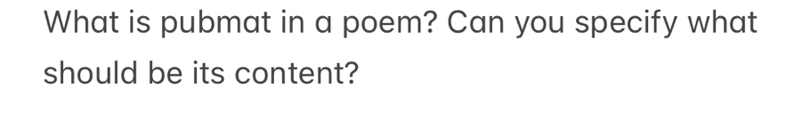 Solved: What is pubmat in a poem? Can you specify what should be its ...