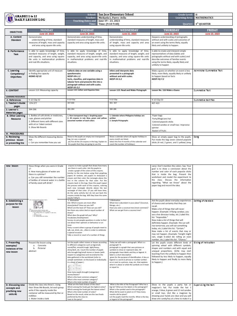 Llas Math Week 6 QTR 4 | PDF