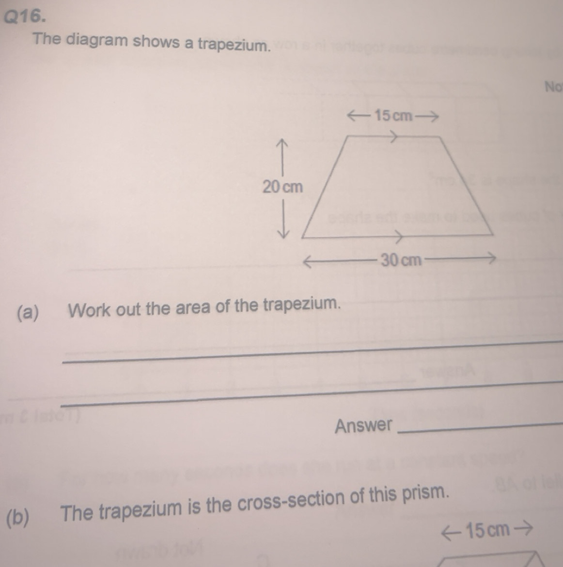 Solved: The diagram shows a trapezium. No (a) Work out the area of the ...